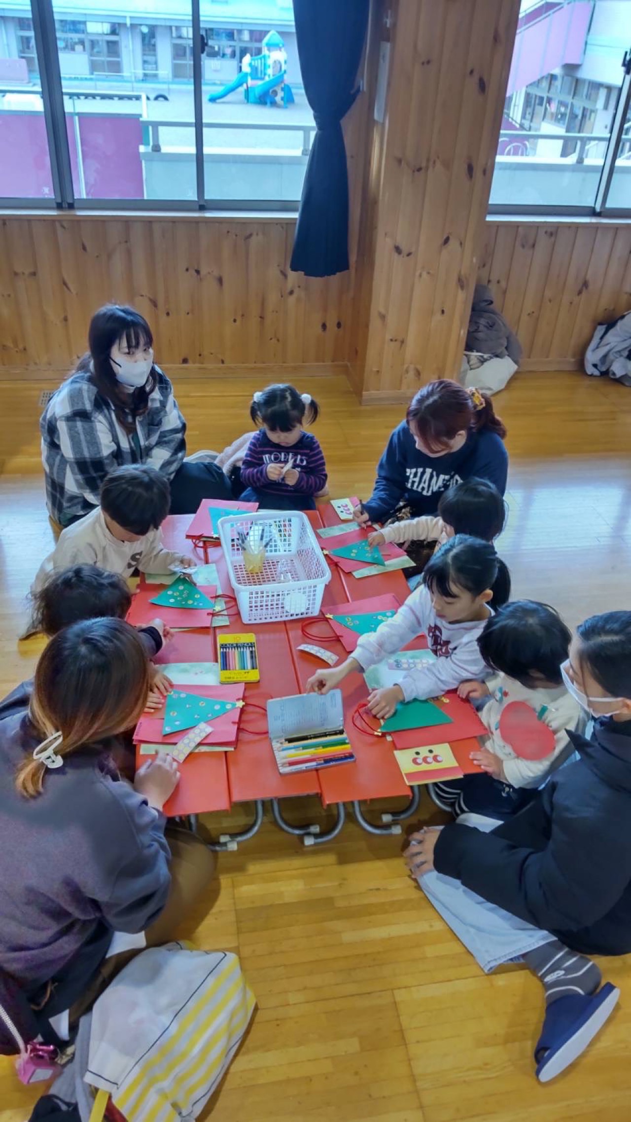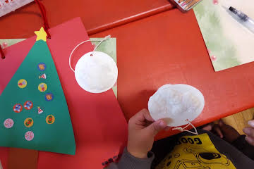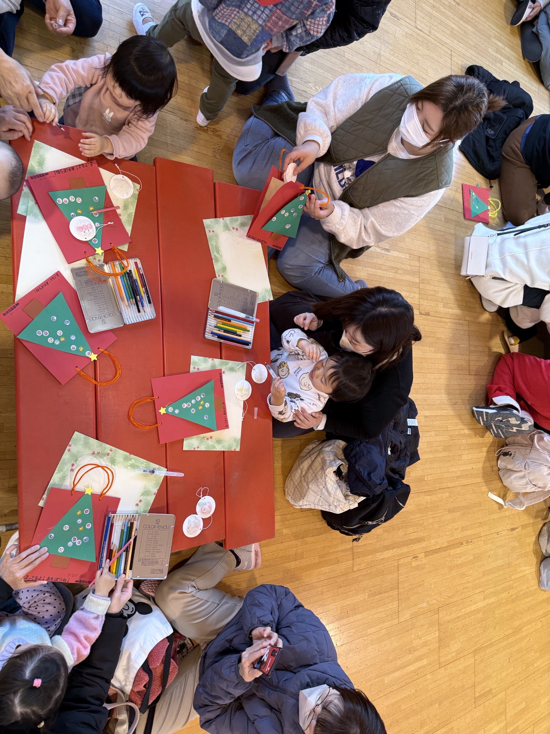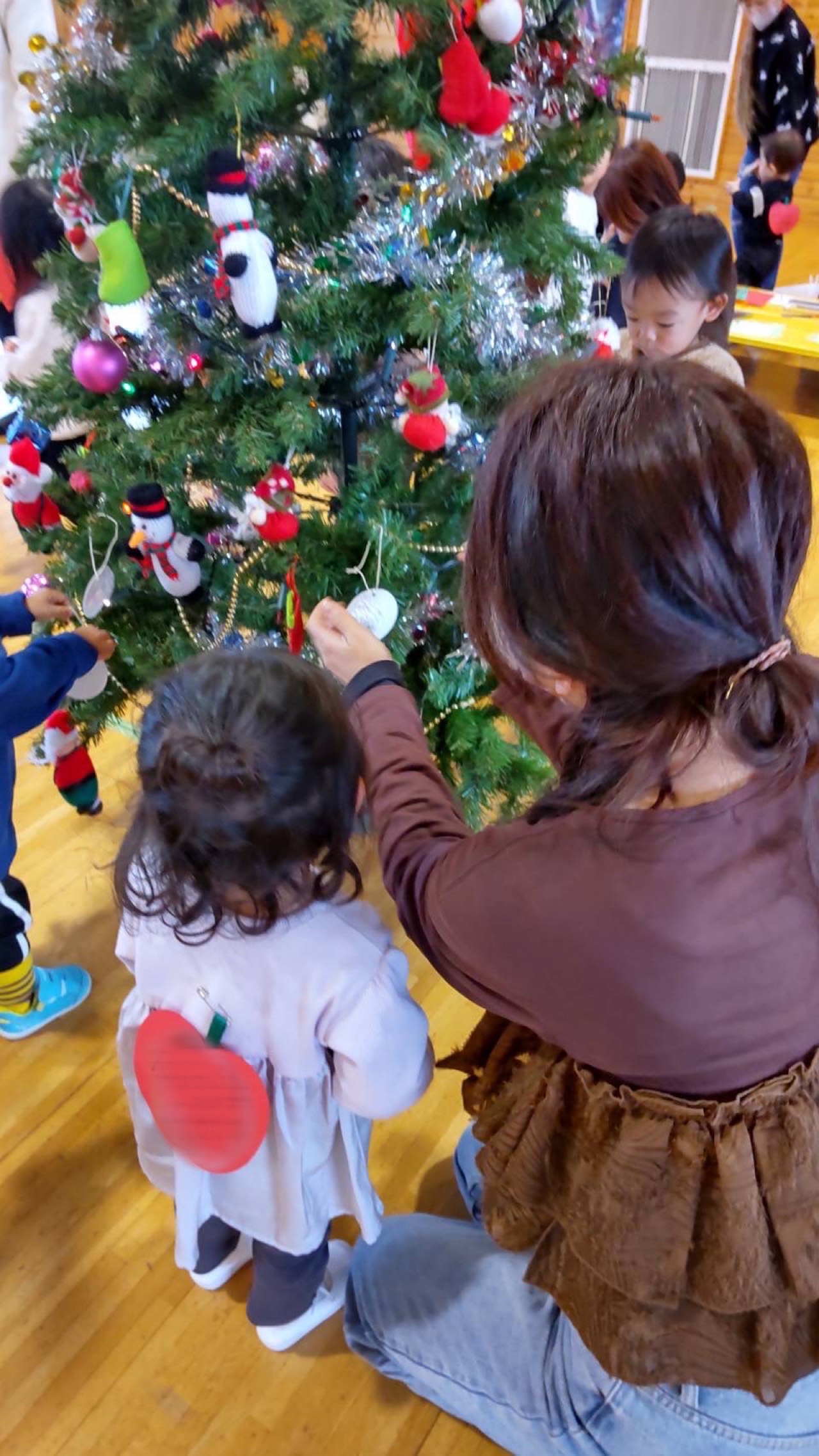 皆さん素敵なアートを完成させていました。その後クリスマスツリーに皆でその紙を飾ってクリスマス会を