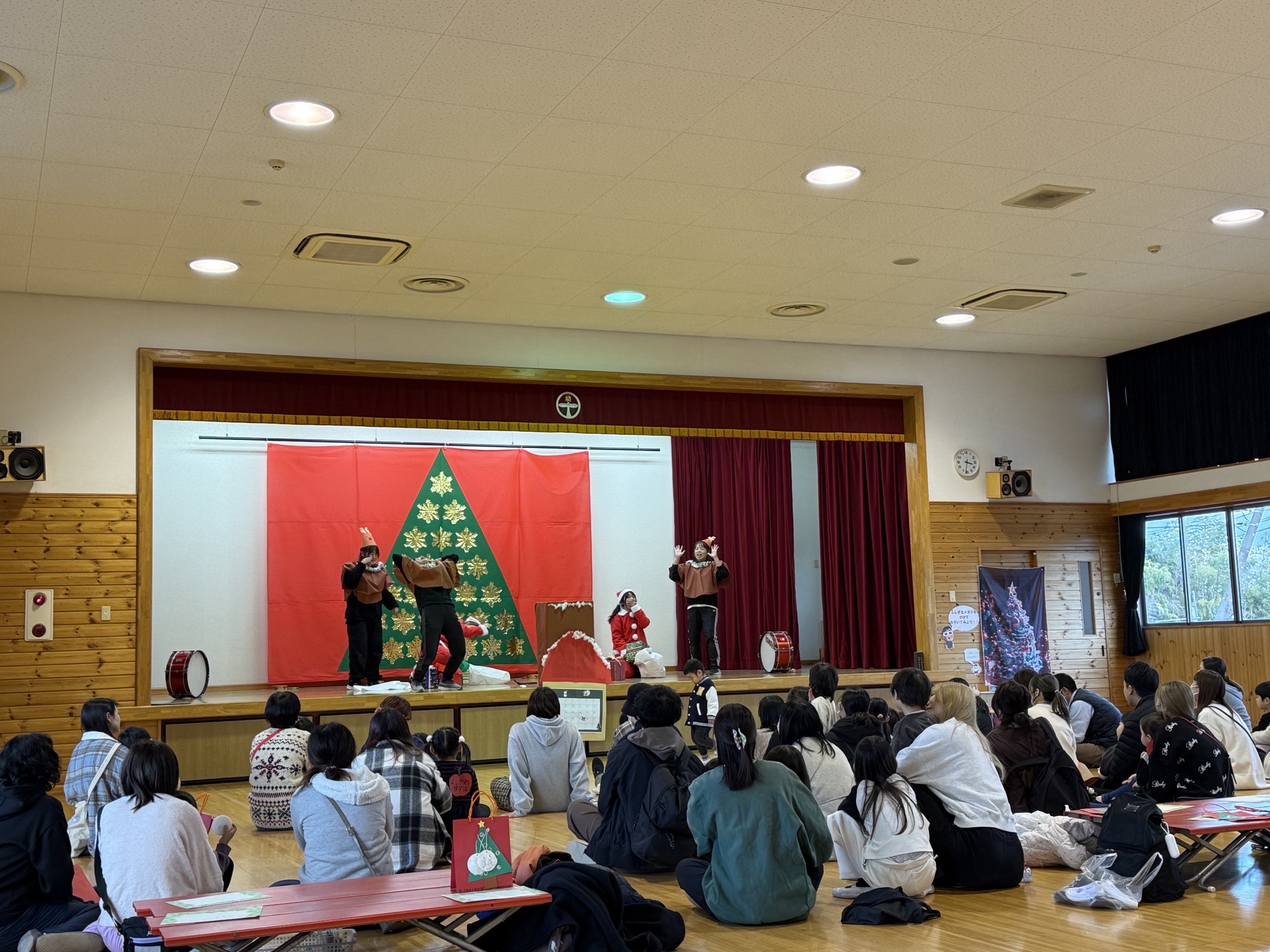 行いました。あわてんぼうのサンタクロースさんやトナカイさん達から素敵なプレゼントをもらって皆が